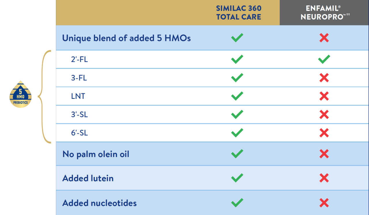 Similac 360 Total Care is the only infant formula brand to have our unique blend of 5 HMOs.